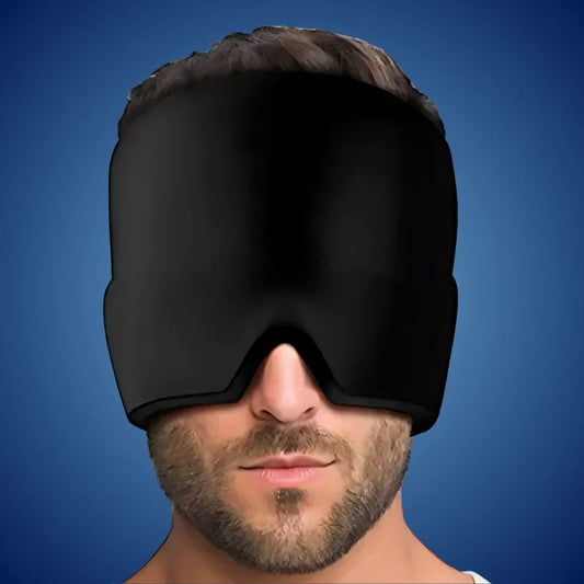 MigraSoothe Exklusiv Gelhaube – Sofortige Linderung bei Kopfschmerzen & Migräne | Kühlender Komfort – Drucktherapie – Lichtabschirmung