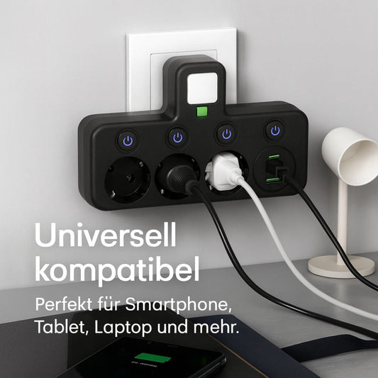 Steckdosenleiste inklusive 3 Steckdose | Mehrfachsteckdose mit USB & Schalter | PowerGrid