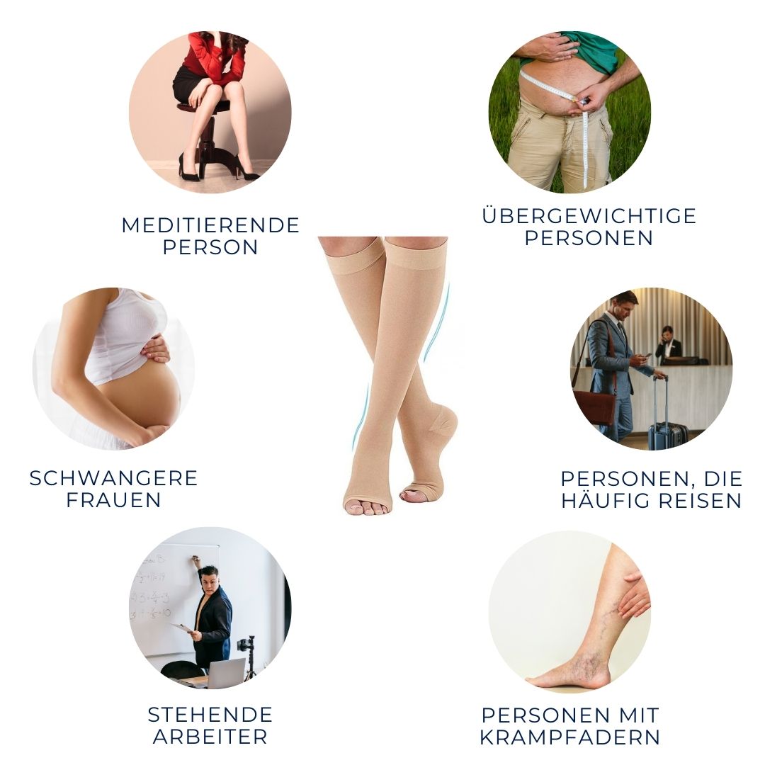 Ideal für alle, die viel stehen oder reisen müssen. Verabschieden Sie sich von Unbehagen und begrüßen Sie den Komfort mit unseren VenoFlex Kompressionsstrümpfen.
